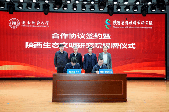 会上,陈新兵与魏新军代表双方签署协议。李晓兵、游旭群、刘志生、魏新军共同为陕西生态文明研究院揭牌。