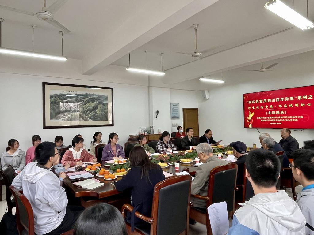 伍子轩同学谈到,今天这场座谈会,其实更像给青年党员上了一节非常丰富多彩的历史课。通过老师们的发言,青年学生得以见微知著,不仅是感受到了各位老师的教学热情以及科学严谨的精神,也了解到师大地理系的历史发展以及我党我国的发展。与此同时,不忘初心,方得始终,通过今天的学习,青年学生深刻地感受到,无论是党员同志又或是一个政党,最难得的就是历经沧桑而初心不改,饱经风霜,而本色依旧。最后,她谈到一代人有一代人的可爱,一代人也有一代人的苦恼,从来没有哪一代是轻松的,却有那么一代人足够幸运,可以用自己的奋斗见证伟大,如今的青年人咬牙负重前行。正是因为如今的青年一代是被历史选中的一代。历史只会眷顾坚定者、奋进者、搏击者,而不会等待犹豫者、懈怠者和畏难者,用力活着才有分量,向前奔跑才能抵达。
