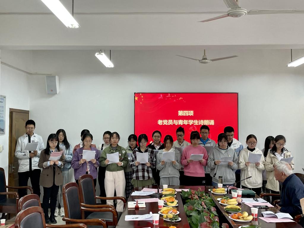 与会的两名青年学生党员伍子轩、李铂川,入党积极分子王于星在听完几位退休老同志发言后纷纷表示作为新时代的青年,更应担当时代责任,勇于砥砺奋斗,练就过硬本领,坚定党的信念,传承红烛精神,不负党和国家的重托。