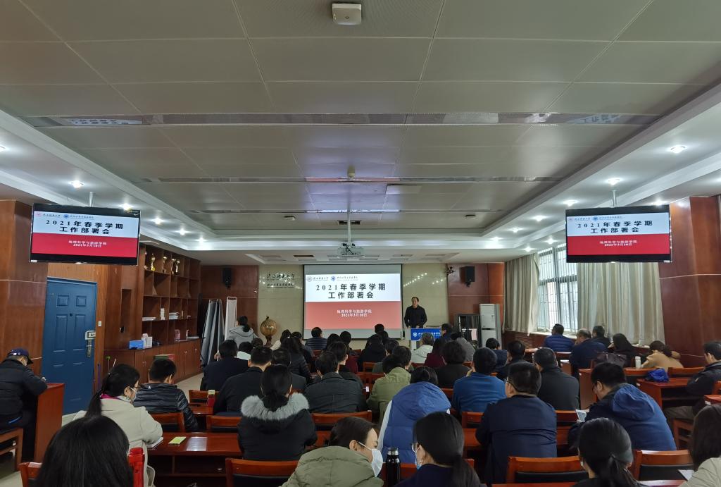 在格物楼一层报告厅召开全院教职工大会,传达学校2021年工作部署会议精神,安排买球网站