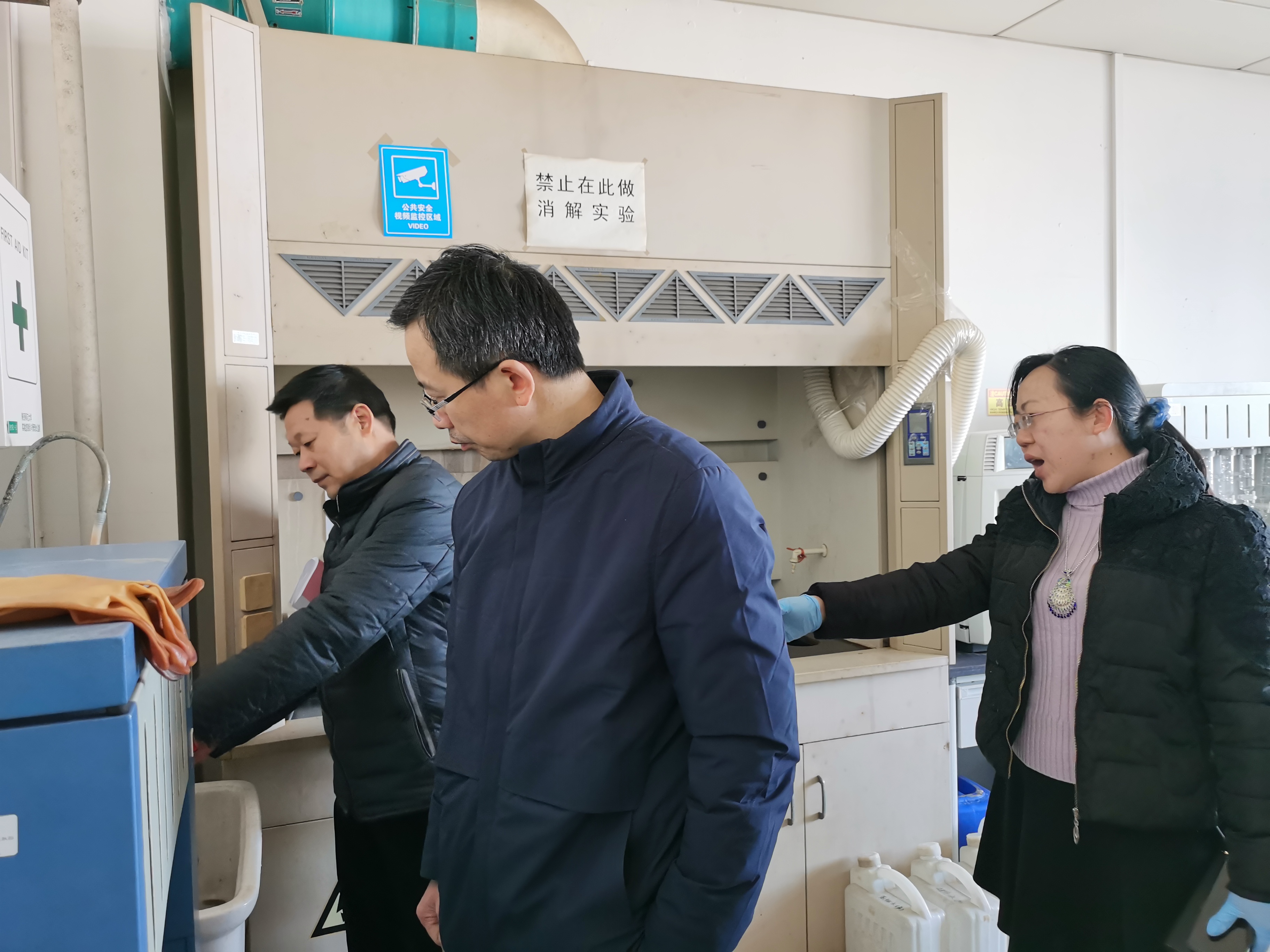 副院长李君轶、学校实验室安全督导贠蒲军、实验中心主任李敏睿带领实验中心全体老师,对买球网站