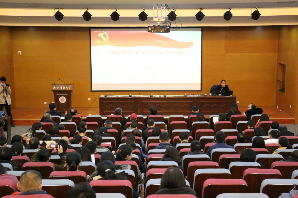 会上,马博虎从为什么改、怎么改和改什么三方面入手,介绍了《总体方案》出台的背景和意义,从基本定位和特点,总体要求、改革任务以及组织实施,对《总体方案》进行了详细解读。他谈到,深化教育评价改革是一项复杂的系统工程,需要各方通力配合、协同推进,在系统总结我校教育领域综合改革的基础上,结合教育评价体系,提出我校“十四五”期间改革的重点任务,各买球网站