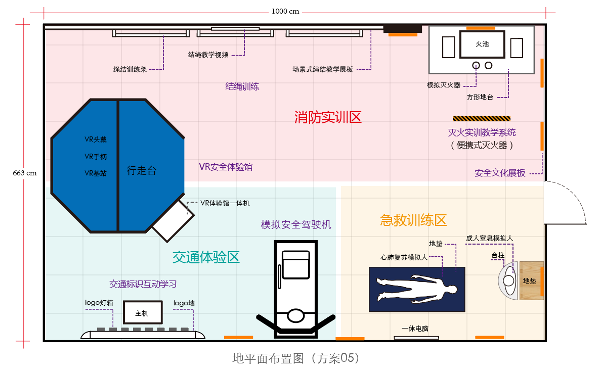 实训馆主要设施及项目包括醉酒行走体验项目、结绳训练、VR安全体验项目、交通标识互动学习项目、安全模拟驾驶项目、灭火实训教学系统和海姆立克训练七大板块。整个过程寓教于乐,通过完善的信息化基础设施和专业的教学设备,“场景式+情景式+体验式”的教育方式,使之成为避灾避险培训和体验的一站式场所,以期全面提升买球网站
