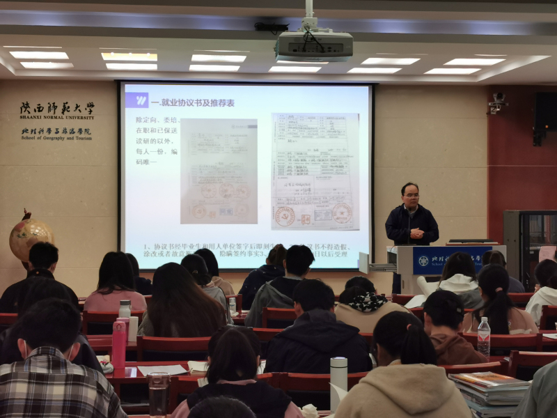 会上,郝高建对当前大学生的就业情况和过去进行了对比,尤其是对我校毕业生的就业情况、毕业生就业存在的问题等进行了讲解,其中对协议书签约、非师范考研志愿报考等做了重点讲述,鼓励同学们认清就业形势,把握好就业机会,顶住压力,积极进取,积极就业。还对求职过程中需要注意的事项做了详细说明。并对三支一扶、公务员选调等不同就业岗位向同学们做了政策解读,并就面试过程可能遇到的问题以及应对方案做了详细解答。