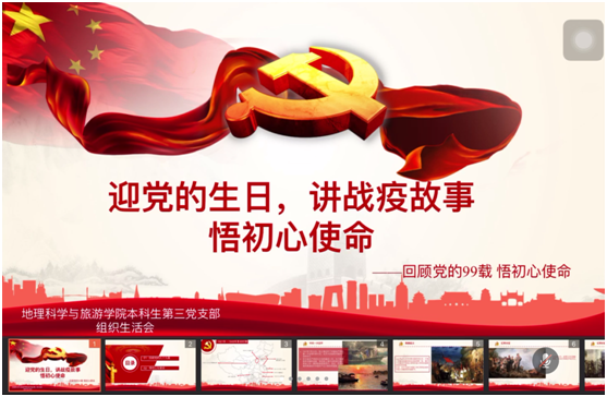 本科生第三党支部通过线上会议的组织方式,举行了题为“迎党的生日,讲战役故事,悟初心使命”的主题党日活动。支部书记张思豆和全体学生党员参与活动,活动由支部副书记伍子轩主持。活动分回顾党史九十九载、讲抗疫故事、悟初心使命三部分。