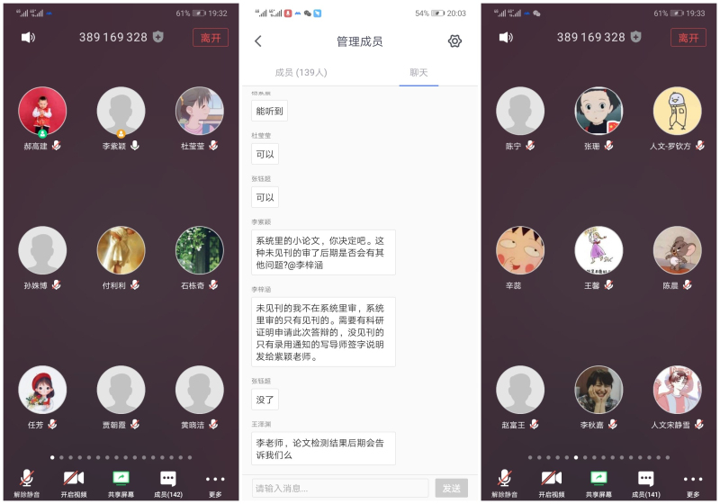 2020届毕业研究生的总体概况、就业进展、特殊就业群体帮扶情况、存在问题以及疫情期间求职签约注意事项等,并就继续做好研究生疫情防控的有关工作进行了强调和说明。研究生秘书李紫颖、李梓涵分别结合学校2020年上半年研究生学位论文工作安排就学术性研究生和专业学位研究生学位论文答辩工作等作了具体说明,并就论文提交时间、申请材料要求、盲审论文格式、论文预审读以及时间截点等作了具体说明。