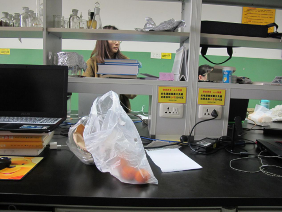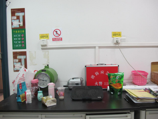 7、4106-4107(安全员:李小平老师):实验台摆放食品,存在食品污染和误食等安全隐患。