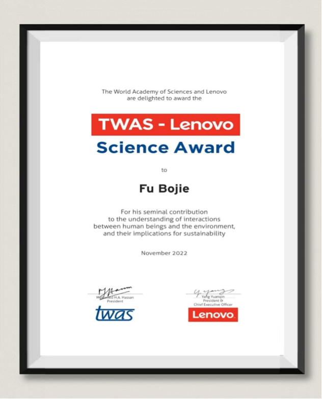 生态环境研究中心研究员、北京师范大学地理科学学部教授傅伯杰,以表彰他在研究人与环境之间的相互作用及其对可持续性的影响方面做出的开创性贡献。