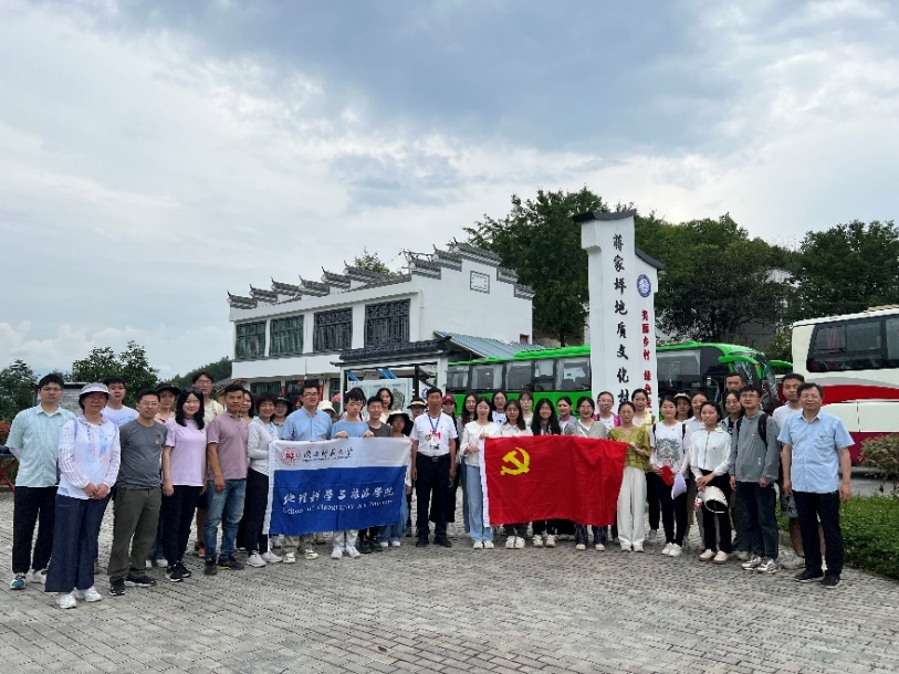 老师查小春、周忠学、胡光印、朱冰冰、曹立国、曾小敏、尚溦、程颖带队,蒋家坪村前任村支书主讲,地理科学支部部分党员、学生党团共96名师生共同参与。