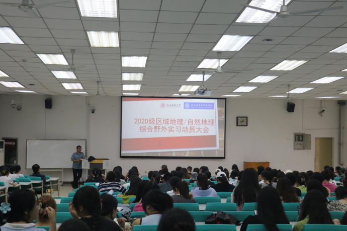 2020级中国地理野外实习动员会在长安校区文津楼4101教室召开。党委副书记代晓飞、实习带队教师岳大鹏、陈林、刘小槺、程林、焦磊、曹立国、朱冰冰、 王景芝、李春越、胡光印、董瑞杰、王浩、邢莉、张钰超及2020级地理科学、地理科学(师范)、地理科学(创新实验班)专业学生参加动员会。会议由岳大鹏教授主持。