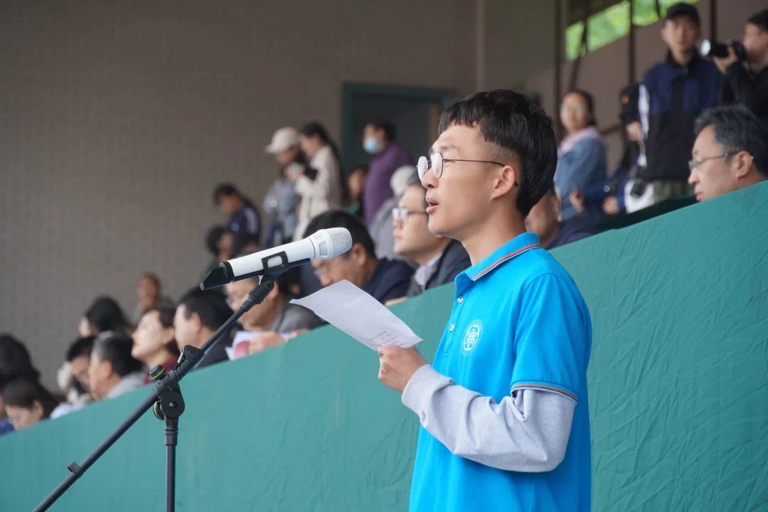 2019级地理科学专业虎军同学作为运动员代表发言,他希望全体学生在运动会中领略体育精神,学会团结协作,赛出风采,赛出水平。