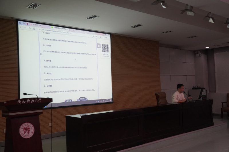针对新生开展金融知识入学教育,以剖析金融诈骗案例的生动形式为学生提供防骗对策及金融安全防范建议,提醒学生警惕网贷套路,同时加强学生的价值观教育,引导学生自觉维护自身合法权益。