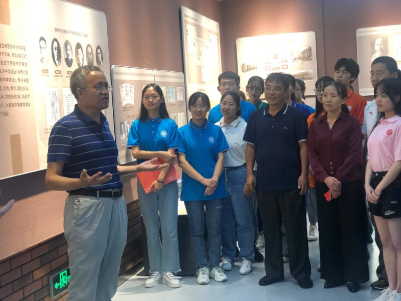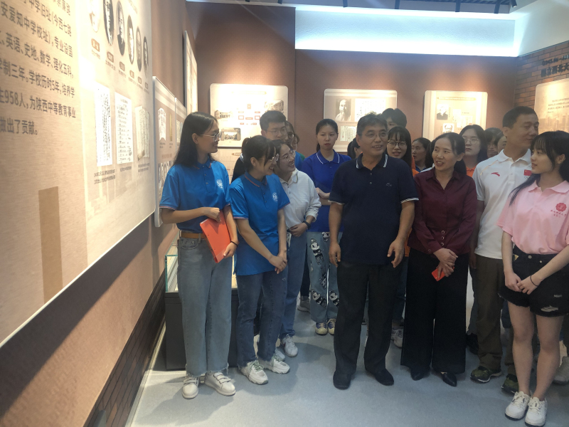 在学校教育博物馆,买球网站 教授延军平、2020年我校“教书育人奖” 获得者岳大鹏、李晶教授与买球网站 师范生代表一起认真聆听讲解员的讲解;作为已经从事教育工作35年的老教授,延军平老师细数着我校76年来星火相传、育人兴邦的发展历程,用理想、信念和情怀,扛起西部教育的大旗。刚刚获得我校“教书育人奖”的岳大鹏老师也与同学们分享了自己三十多年从教以来总结出的教学方法和经验。