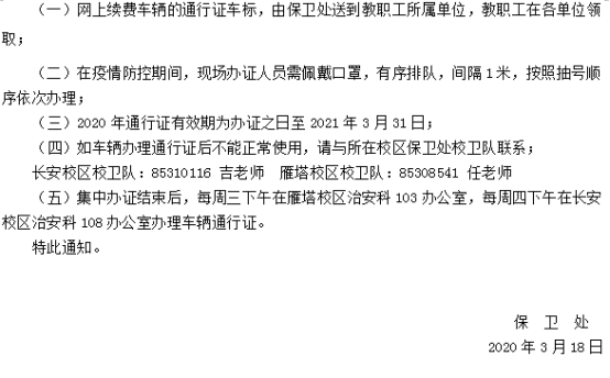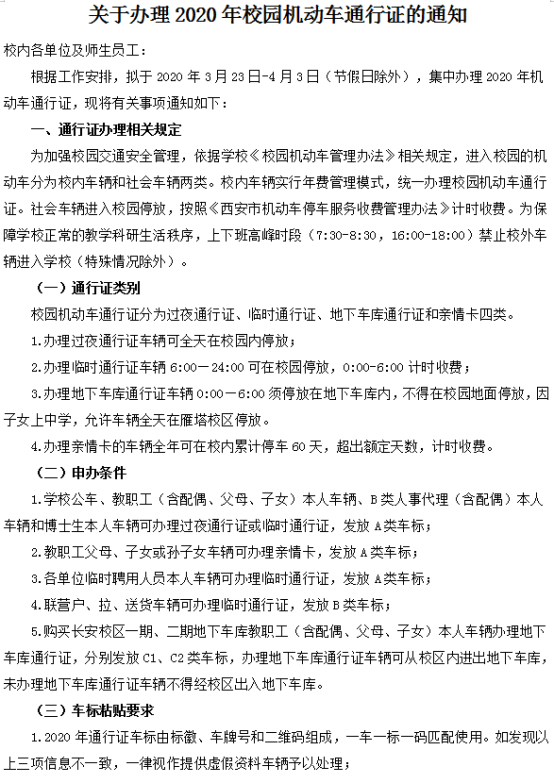 转发保卫处关于办理2020年校园机动车通行证的通知