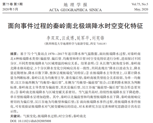 科研成果(三):面向事件过程的秦岭南北极端降水时空变化特征